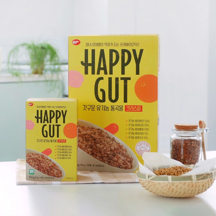 껍질째 먹는 통곡물은 그 자체로 장내미생물의 먹이가 되는 프리바이오틱스입니다. 현미 보리 밀 수수 귀리 5가지 곡물을 한꺼번에, 바삭바삭하게, 껍질째 먹을 수 있는 방법은 HAPPY GUT입니다.